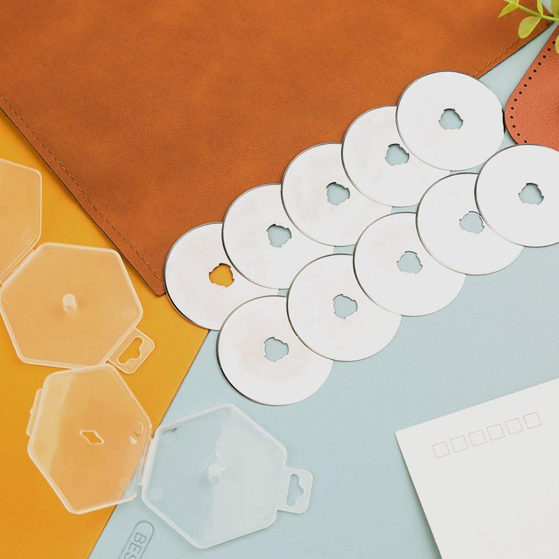 - Complete rotary cutter set: 45mm rotary cutter with 10 Pcs replace rotary cutter blades and plastic blade storage case, rotary cutter set for quilting sewing arts crafts, sharp and durable.