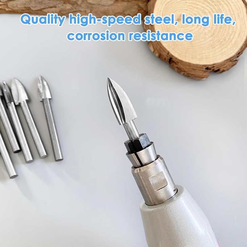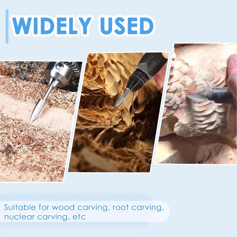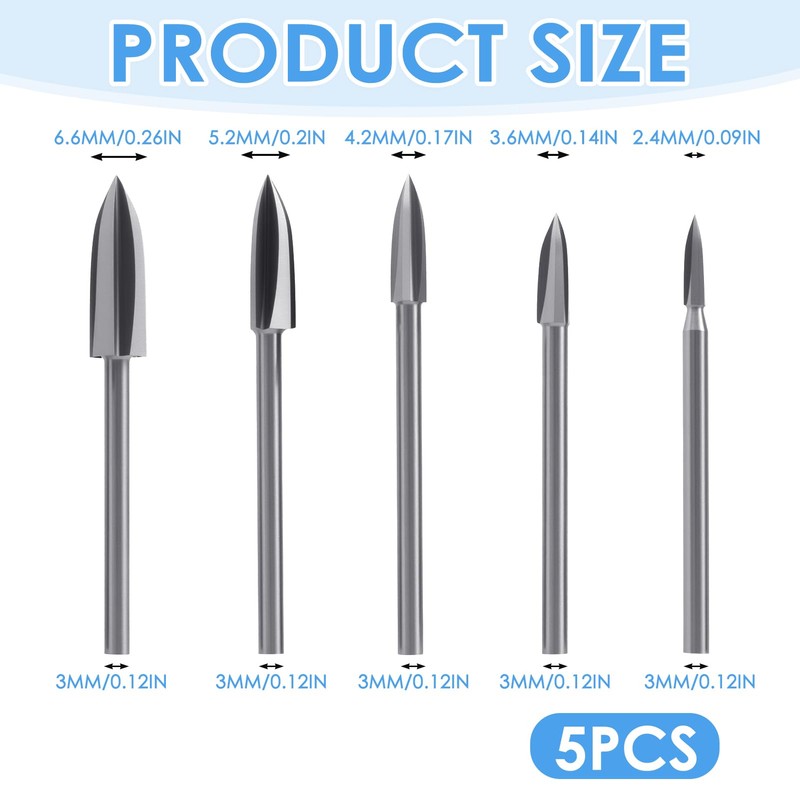- 【Versatile Carving Bits for Any Project】This wood carving rotary tool accessories includes five high-quality bits, each with a different diameter. These varying sizes give you the flexibility to tackle a wide range of woodworking tasks, from delicate detailing (such as bird feathers and fish scales) to larger surface carvings,this set provides all the tools needed to complete your project with ease.