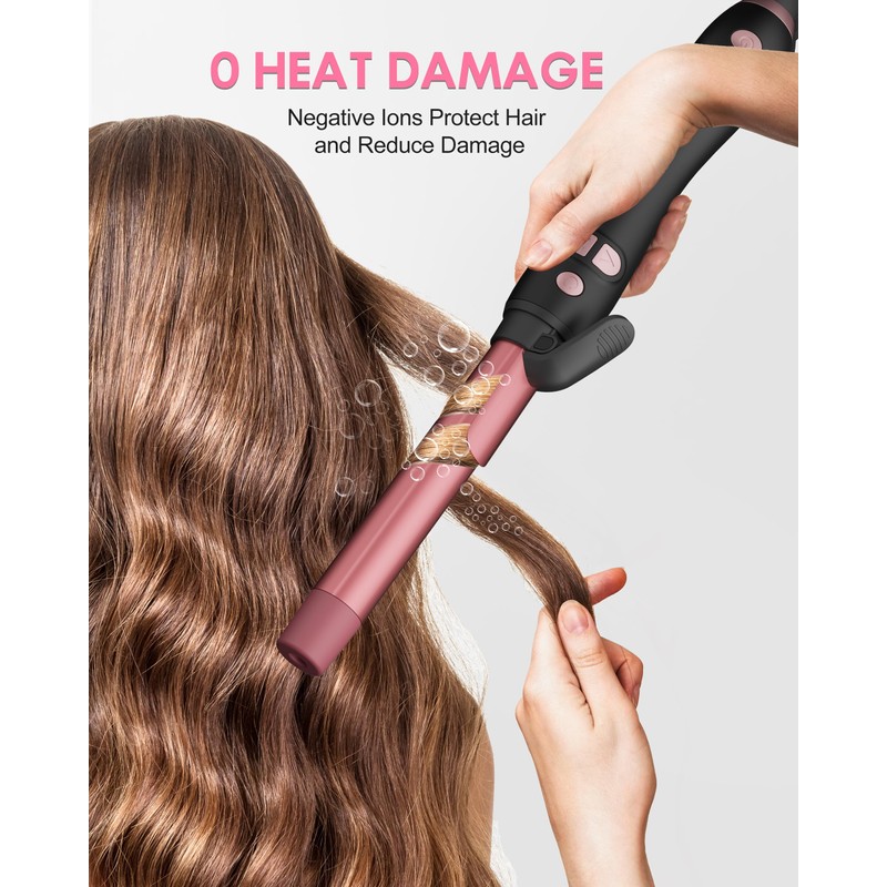 - Harmless to Hair: Our automatic hair curler features a tourmaline ceramic coated with a heat-resistant layer to reduce heat damage. Hair curling iron minimizes damage to the hair during styling. Rotating curling iron incorporates an ion emitter, generating millions of negative ions that preserve the health and luster of your hair, all the while ensuring long-lasting curls