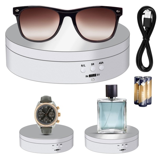 - 360 Degree rotating turntable: the motorized rotating display stand can provide a customer 360 degree view of your product and it also allows photographers to take photos in a 360 degree view; And with a large load capacity of 6.6 pounds, this rotating display base offers good stability