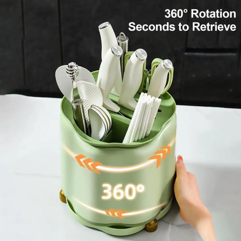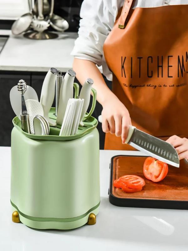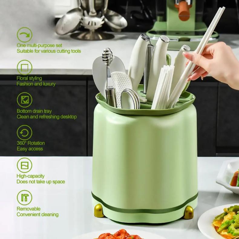 Rotating Knife Holder, Petal Shaped, 360 Degree Rotating, Large Capacity Chopsticks, Knife Holder, Kitchen Supplies Storage Rack Kitchen Knives Knives Plastic - Color: Green