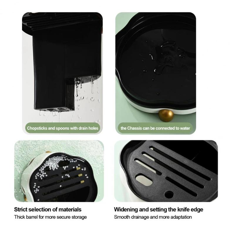 Designed with multiple slots, this cutter rack can store different types of cutters as well as chopsticks and spoons and other tableware, making it space-saving. In addition, it is designed with a removable draining tray, making it easy to clean.