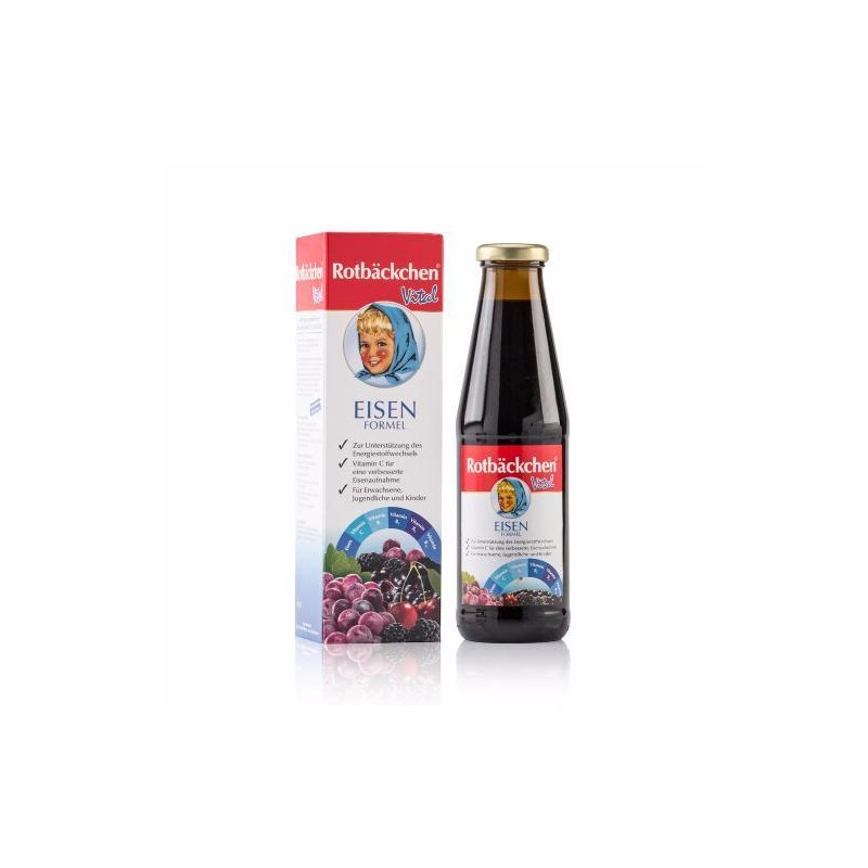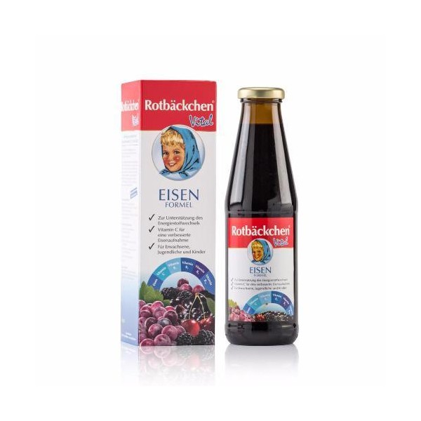 For your everyday performance, an adequate supply of vital nutrients is indispensable. On the basis of natural ingredients, Rotbäckchen Vital Iron Formula contributes to the daily support of your energy metabolism and your immune system. With iron and vitamin B6 contribute to the normal formation of red blood cells, Rotbäckchen Vital Iron Formula also contains vitamin C that leads to an improved iron absorption, while vitamins B1, B2 and B12 support the normal energy metabolism. Iron is the mineral and trace element that our body cannot produce by itself, therefore it must be taken from diet. An excellent choice for adults, teenagers and children, with tasty fruit juices ensure a pleasant, natural and fruity taste.