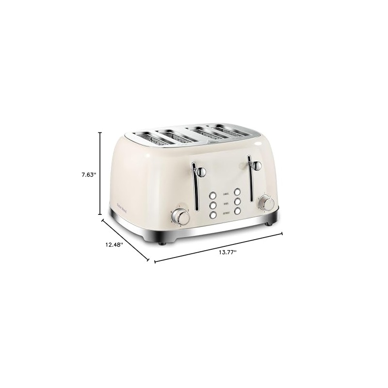 Roter Mond 4 Slice Toaster Roter Mond Retro Stainless Steel with Bagel Defrost Cancel Function, 6 Browning Settings, Extre Wide Slot and Removable Crumb Tray, Cream, ST033