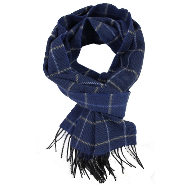 Rotfuchs Men's Winter Scarf Checked Fashionable Multiple Colours 100% Wool (Merino) 180 x 30 cm, blue
