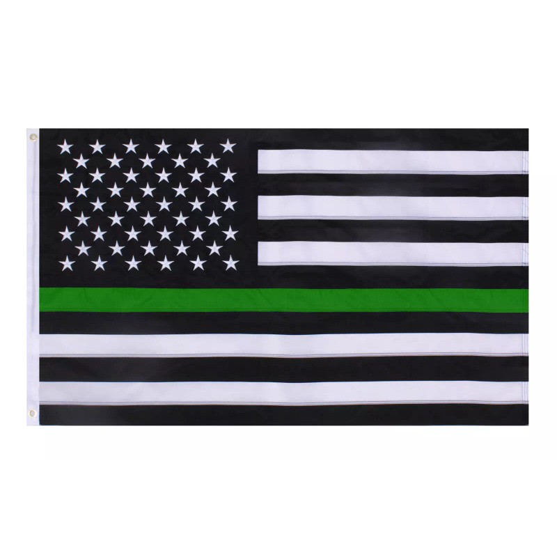 - Features: Thin Green Line On US Flag, Durable Double Stitched Non-Shiny Polyester