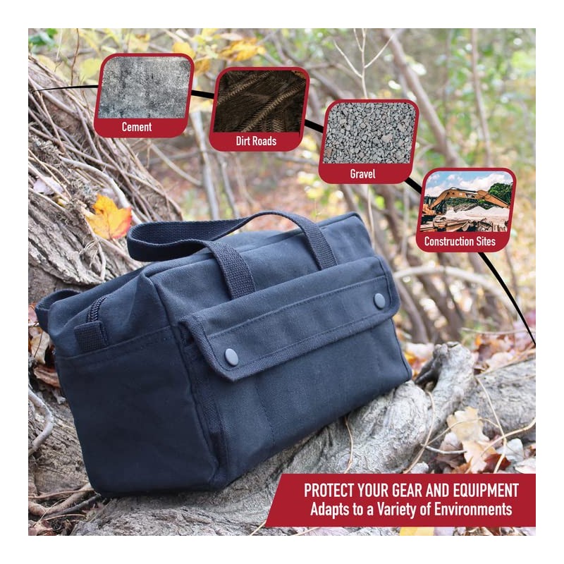 - OLD SCHOOL STRONG: Each Utility Bag Is Constructed With A Heavyweight Cotton Canvas Material That’ll Withstand Constant Use. These Bags Feature A Hard Bottom Insert That’ll Support The Weight Of Your Tools And Gear.