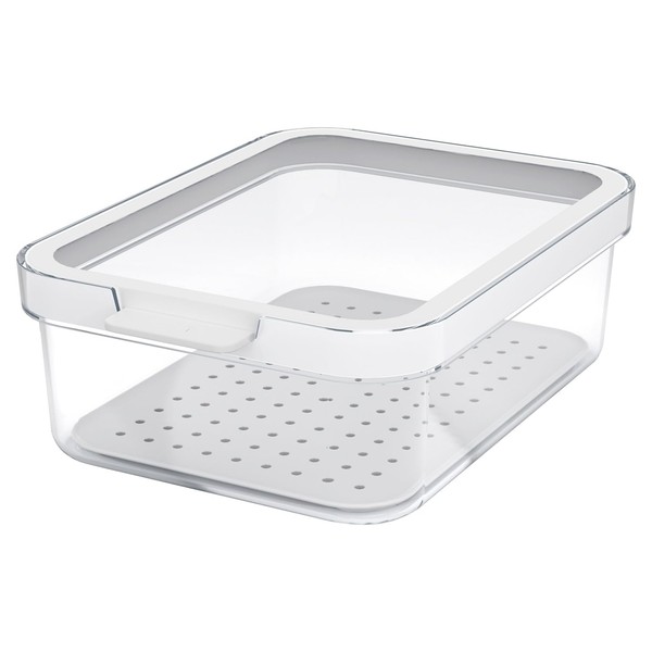 • Inside the container there is a perforated grid that allows liquids to drain, keeping food protected and fresher for longer
