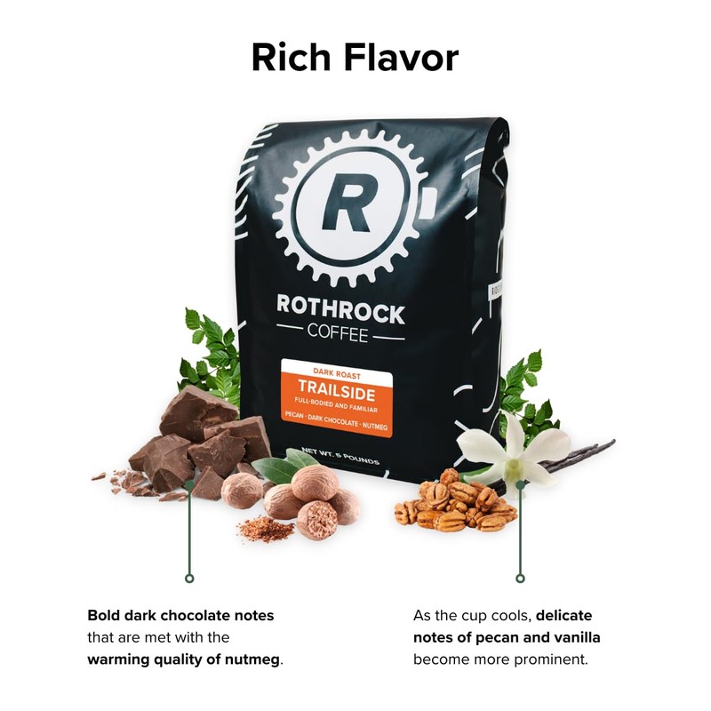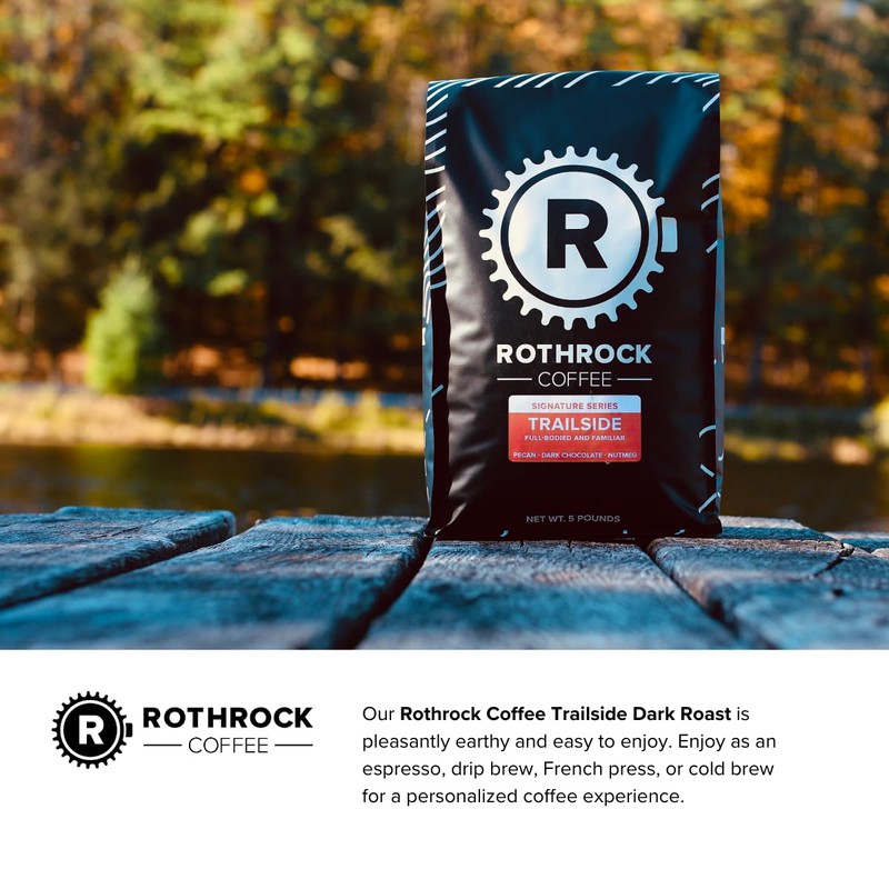 Rothrock Coffee - Trailside - Dark Roast - Whole Bean Coffee - For Espresso, Drip Brew, French Press & More - Full-Bodied & Smooth - Rich Chocolate & Nutty Notes - 5 lb Bulk Bag
