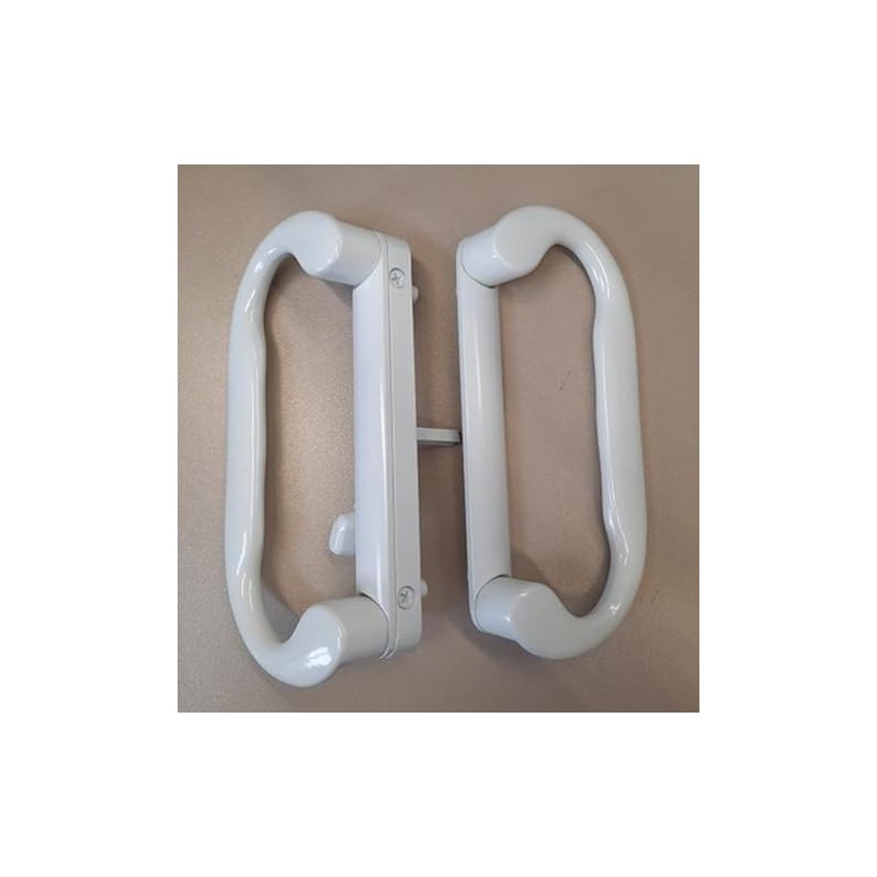 Roto Interlock Sliding Patio Glass Door 7.5" White Handle Set Replacement - Interior and Exterior Handles with Screws with a 4-15/16" Hole Spacing - Fix and Repair Door Hardware - White