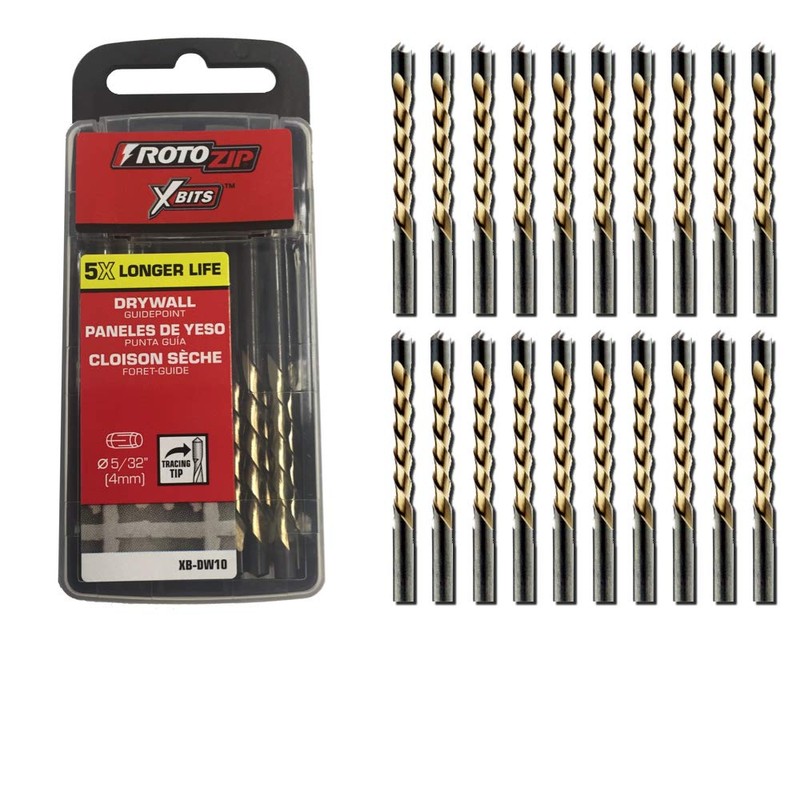 Rotozip 5/32" Drywall XBits (Pkg Of 10) Allows you to make faster, controlled drywall cut-outs from outlets to window/door openings. 10 Per Pack 5/32" Diameter High Speed Steel lasts five times longer and cuts two times faster than standard router bits