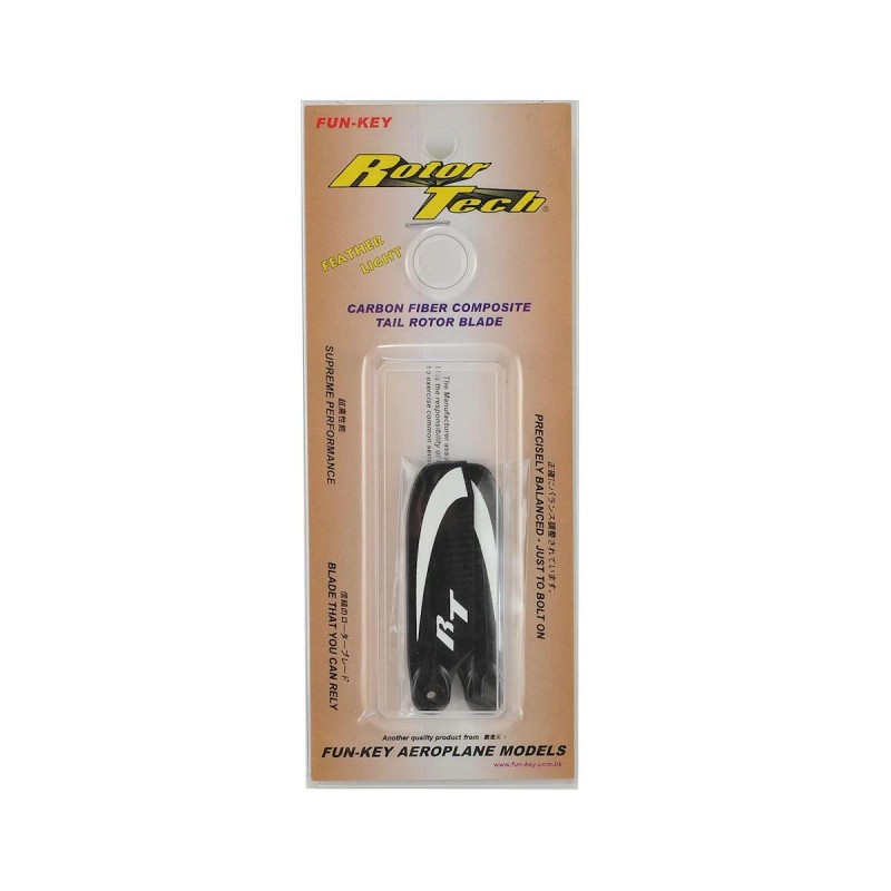 RotorTech blades are finely crafted premium carbon fiber rotor blades from Fun-Key Aeroplane Models. RotorTech blades are designed to be an all around powerful, efficient, well rounded performance oriented blade that will suite a large majority of flight styles from simple aerobatics, F3C, and extreme 3D flight. Additionally, RotorTech blades utilize a minimal amount of paint within the mold, while still providing excellent flight visibility. By using less weight on all of their blades, weight is saved on each set which offers a small boost in performance.