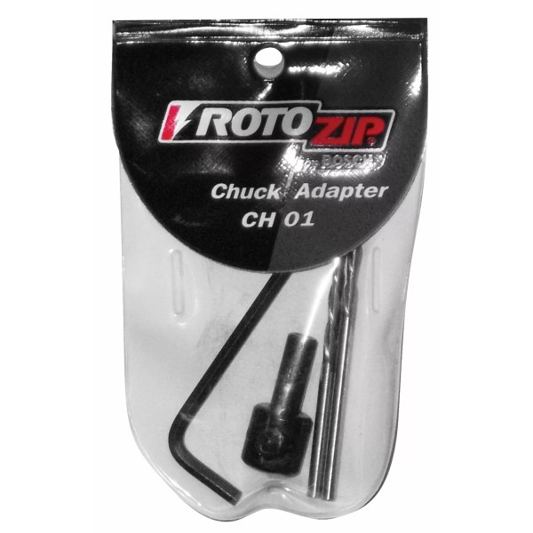 The Roto-Zip 1/8-1/4" Chuck Adapter Kit allows you to use 1/8" router and drill bits in your 1/4" chuck rotary tool. Comes with chuck adapter, hex key and 2 bits.