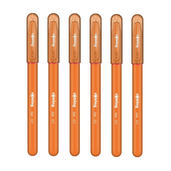 rOtring Gel Rollerball Pens - Medium Point 0.7mm - Rubber Grip - Pack of 6 - Orange Ink - Smooth Quick Drying Gel Ink
