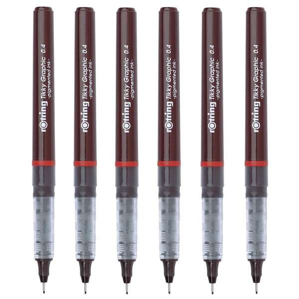 rOtring Tikky Graphic Fineliner Drawing Pen 0.4mm - Black Ink - Pack of 6