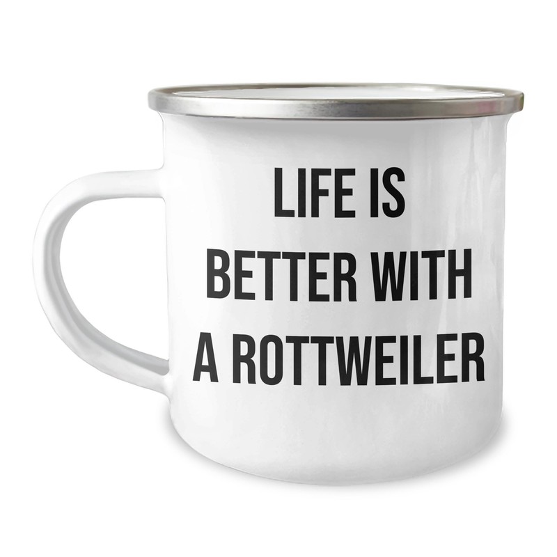 - Show off your Rottweiler pride with this unique camping mug, designed to make a statement. This funny quote 'Life Is Better With A Rottweiler' is a bold statement that shows you're proud to be a Rottweiler owner, and this mug is the perfect way to express that.