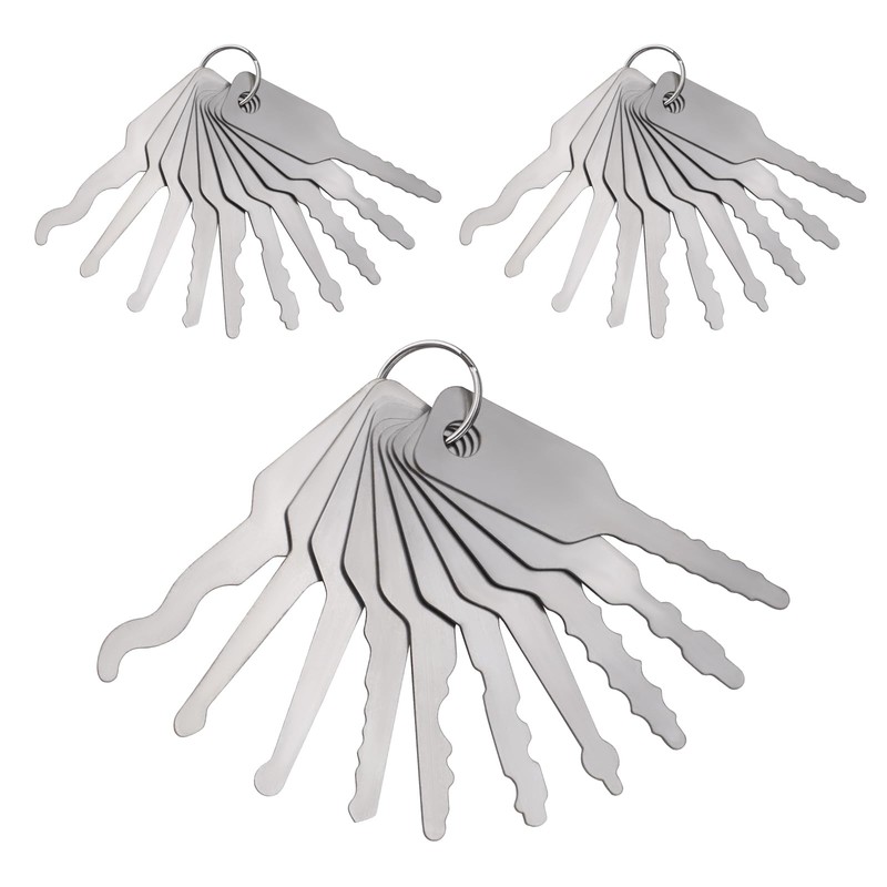 - 3 Sets of Emergency Keys: Each set of 10 master keys with different shapes is designed to tackle lock-picking tasks after purchase and processing. Whether for car locks, door locks, or cabinet locks, this toolkit is handy for you