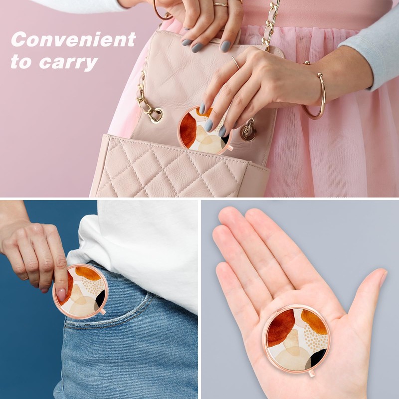 Rouidr Travel Pill Organizer, Small Pill Box, 3 Compartment Cute Pill Case for Purse, Portable Medicine Pill Holder to Hold Vitamins, Fish Oil, Supplements & Medication, Rose Gold(Simple Abstract Art)