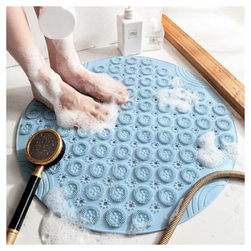 😌 The mat's unique textured nodes offer a comforting underfoot sensation, enhancing your shower or bath experience with every step.