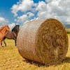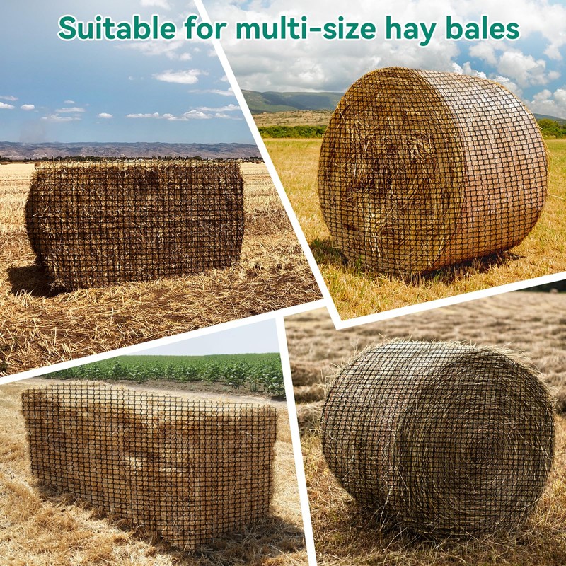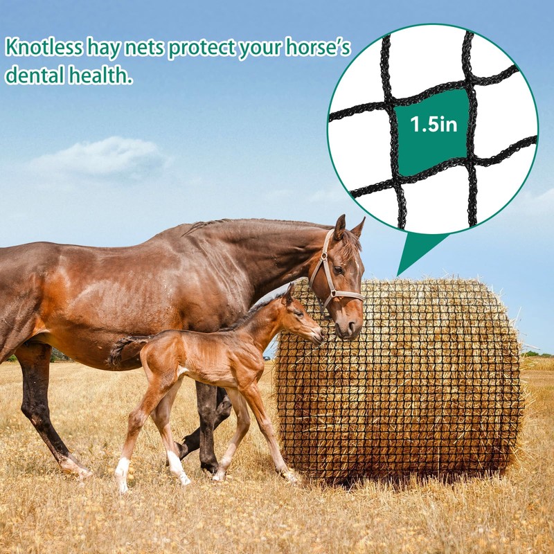 MIYABALA Round Bale Hay Net for Horses,5x5 Feet Knotless Slow Feed Hay Net Feeder for Livestocks,Heavy Gauge Large Hay Net for Horses, Cattle, Sheep in Farms and Pastures