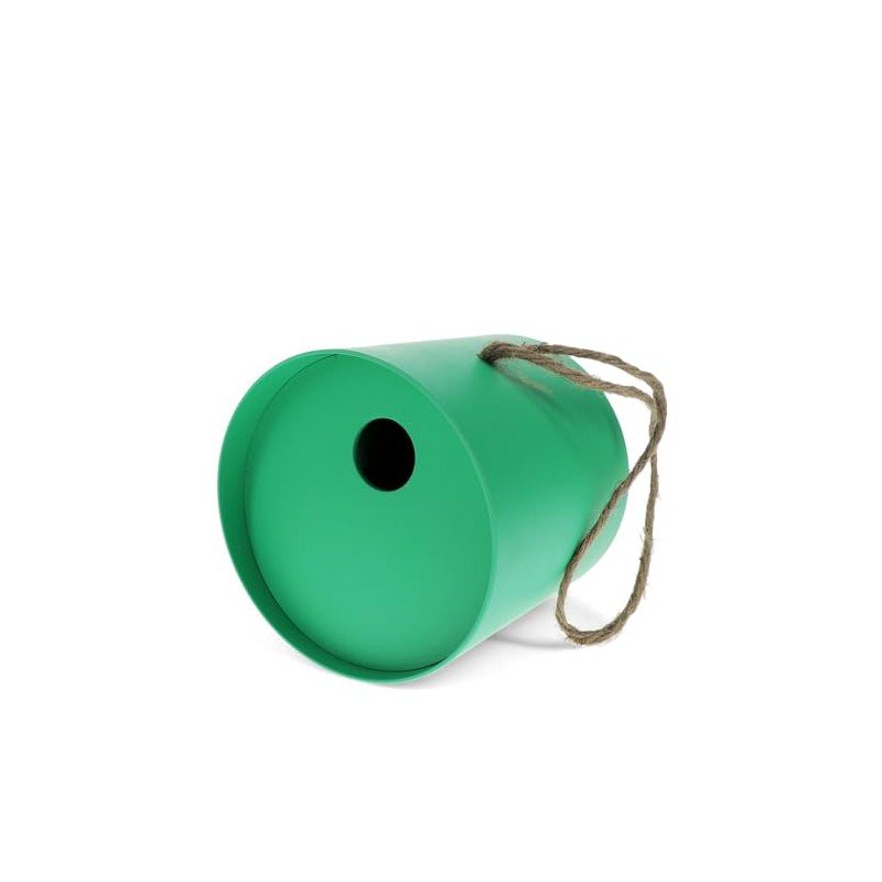 - Brighten up your garden with this round birdhouse in green.