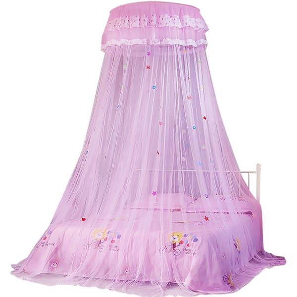 Round Canopy Lace Princess Style Mosquito Net Bed Curtain for Children Bed (Pink)