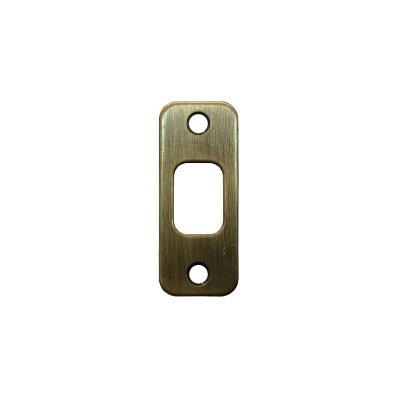 Round Corner Deadbolt Strike Plate, 1 1/8" x 2 3/4", 2 1/8" Center-to-Center, Antique Brass by Stone Harbor Hardware