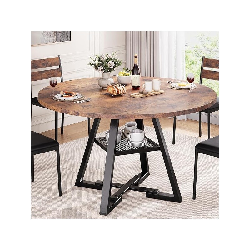 Round Dining Table for 4,Kitchen Dining Room Circle Dinner Pedestal Table,Space Saving Wood Kitchen & Dining Room Furniture (Vintage, 47In)