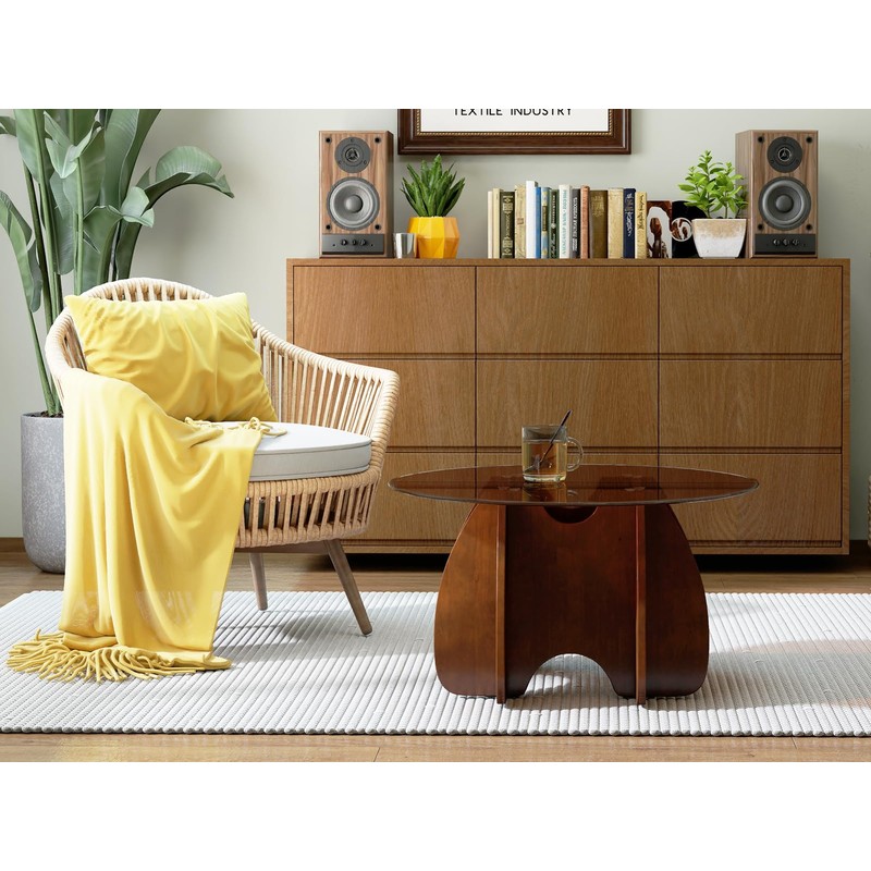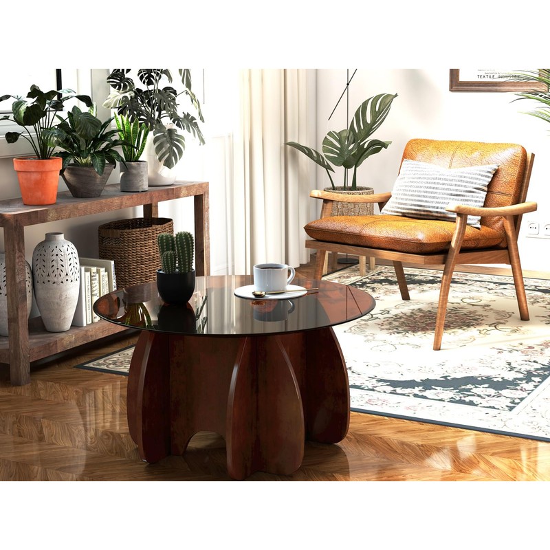 - MODERN DESIGN INTERPRETS CLASSIC STYLE:Featuring a semi transparent brown glass tabletop and an elegant solid wood base, it creates a modern medieval style