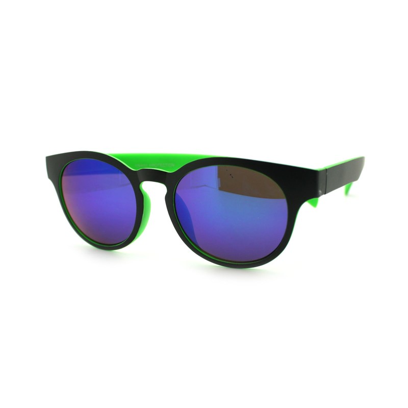 Round Keyhole Sunglasses Color Mirror Lens Spring Hinge Black Green