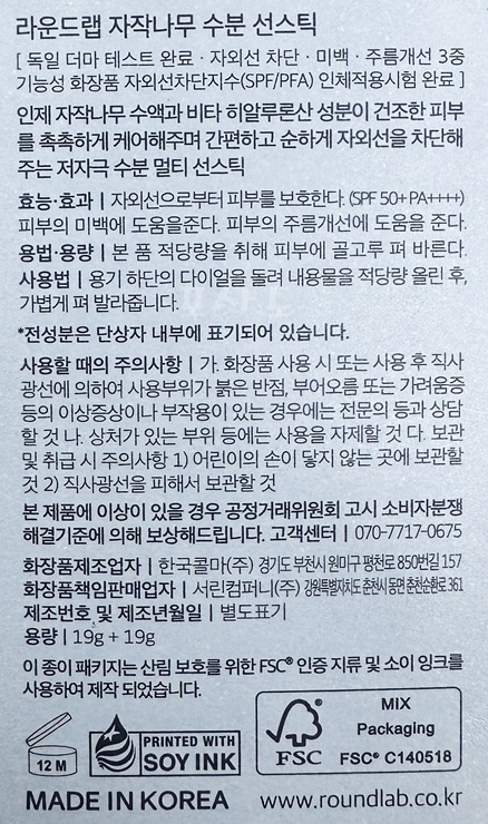 라운드랩 자작나무 수분 선스틱 19g, 2개