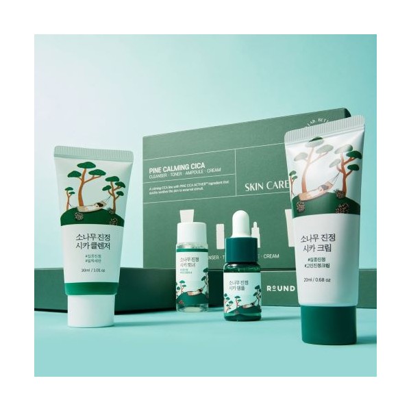 Experience the soothing power of pine cica with this trial kit, perfect for sensitive skin. This kit contains everything you need for a complete skincare routine.