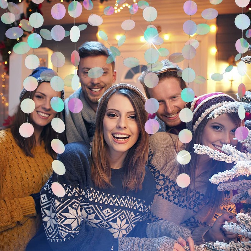 - Perfect decoration: the colourful paper garland has a shiny reflective surface that shines with rainbow colours and laser light under the light and makes the scene even more dreamy and romantic. Lightweight and easy to hang, the garland is reusable and perfect for setting up a variety of scenes.