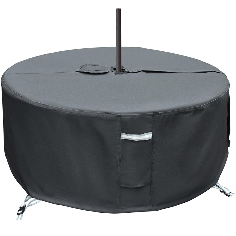 Round Patio Table Cover with Umbrella Hole - 48" Dia x 28" H (Cover Size,NOT Table Size) Heavy Duty Waterproof 600D Oxford Fabric Outdoor Lawn Patio Furniture Covers