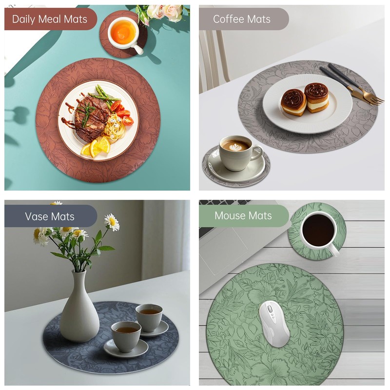 - Excellent Non-slip Design: The three-dimensional carving floral pattern makes the surface of the table mats present a certain non-slip texture, and the other side is upgraded the surface design, adding enough friction to ensure this place mats doesn't slip while dining.