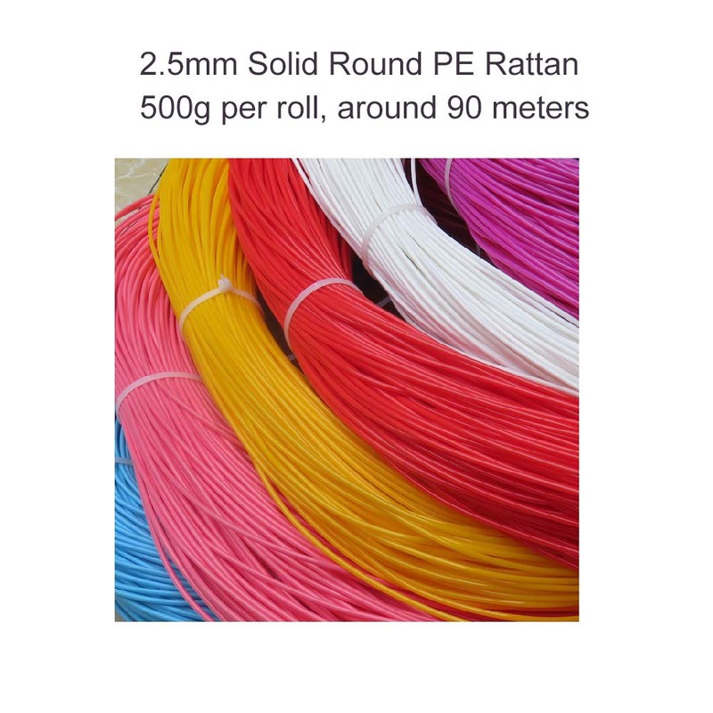 Round Plastic Rattan 2.5mm Plastic Wicker Round Faux Rattan for Repairing and DIY Weaving Storage Basket (Khaki)