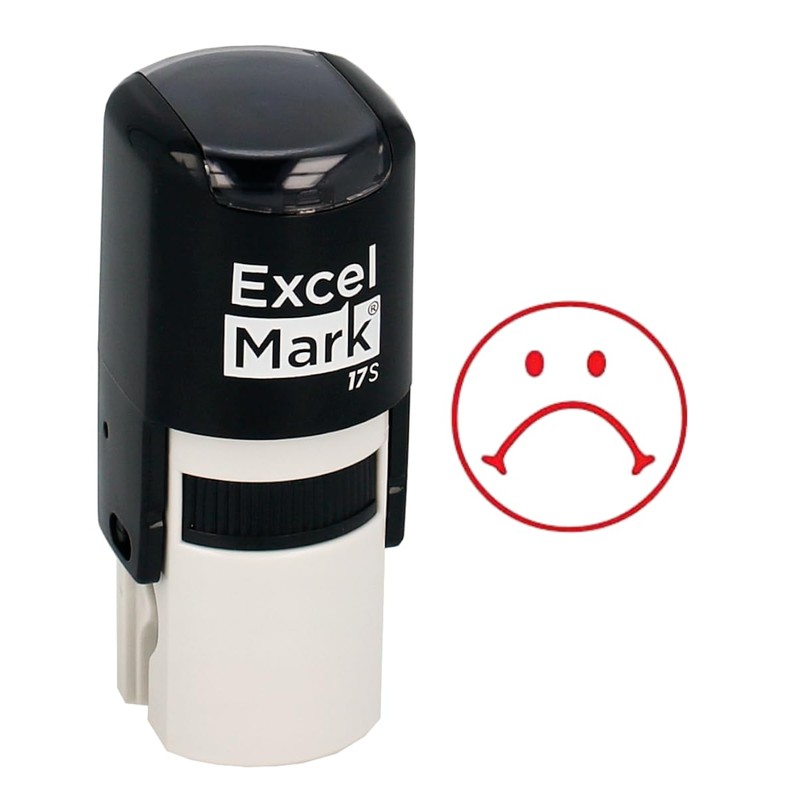 Round Teacher Stamp - Frown FACE 1 - RED Ink