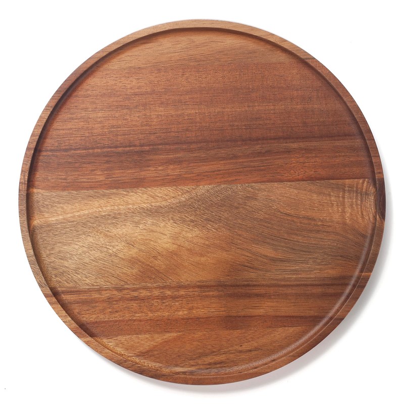 Round Wood Tray, Acacia Wooden Serving Tray, Decorative Tray for Coffee Table and Home Decor, Round Wooden Tray for Kitchen Counter Living Room (11.8 inch)