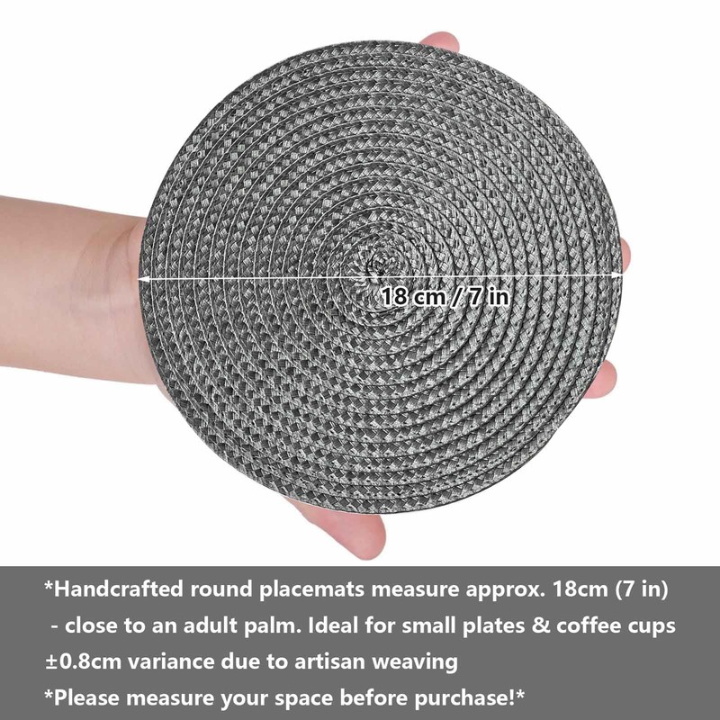• Compact 18cm Table Mats Set of 6: Small size placemats - Handcrafted 18cm (±0.8cm variance). Fits espresso cups & small plates (12-18cm). Please ensure the size suits your requirements.