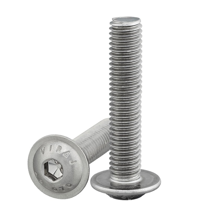 Rounded Head Screw with Flange and Hexagon Socket (ISK) According to Standard: ISO 7380-2, Stainless Steel A2 V2A Full Thread Flange Screw Flat Head Screw Lens Screw (Pack of 10, M8 x 65 mm)