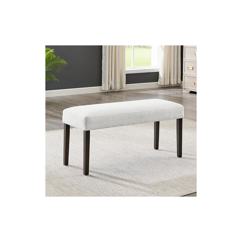 - [BUILT TO LAST]: This bench features a cushioned seat for comfort during long periods of sitting. Upholstered in premium fabric, it offers a luxurious look and enhanced comfort. It's durable and stable due to its Rubberwood construction. The padded feet protect floors from scratching.