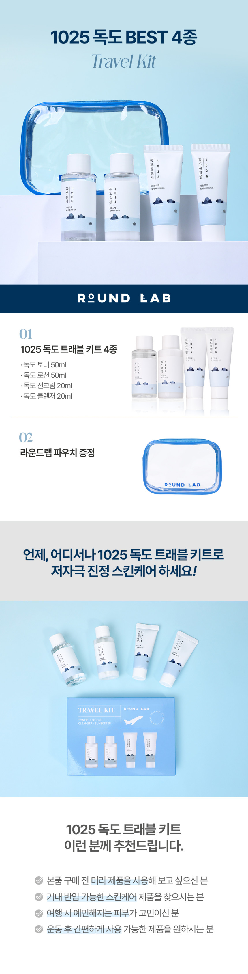 roundlab 라운드랩 1025 독도 트래블 키트 4종 x 파우치
