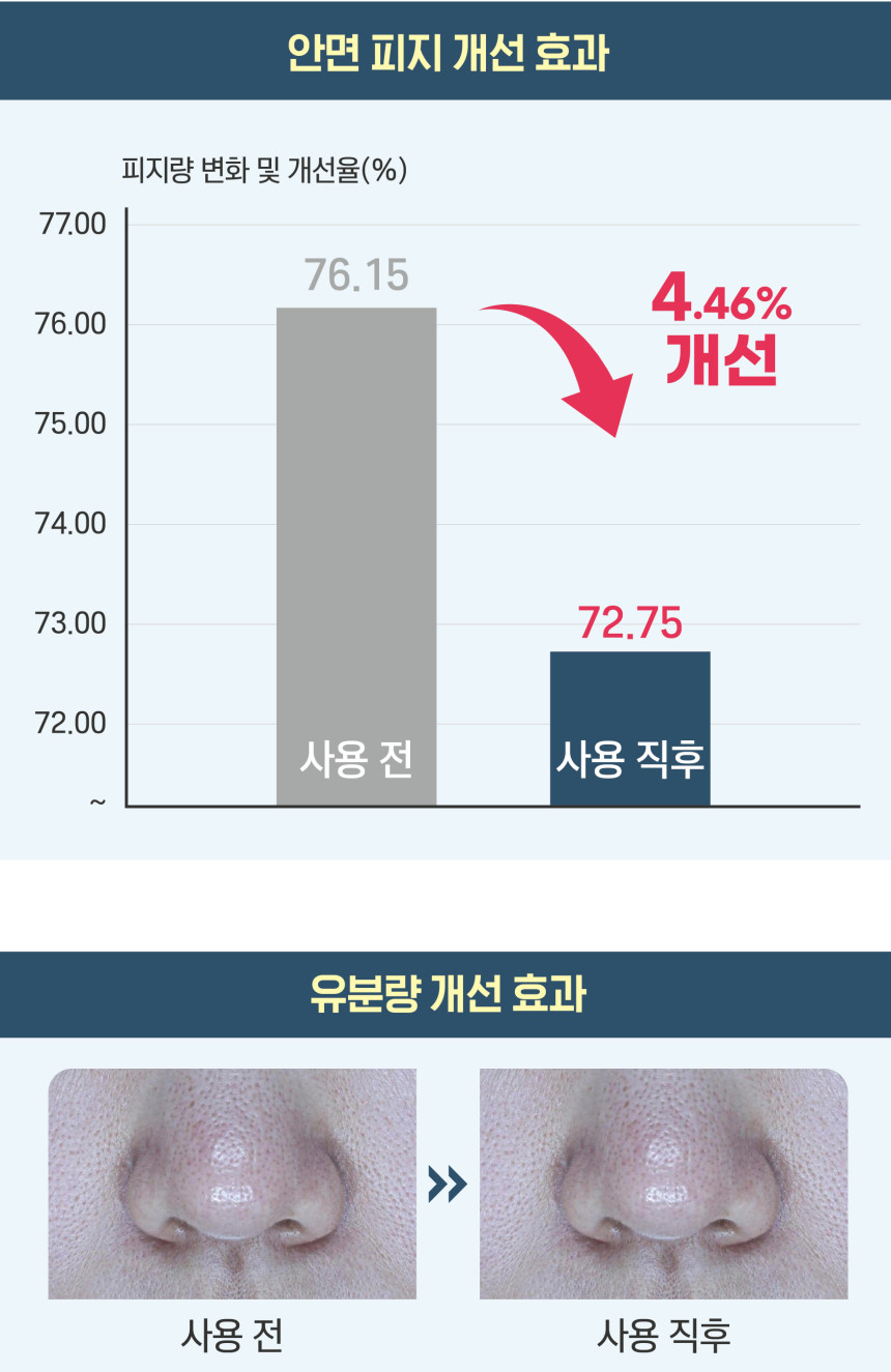 안면 피지, 유분량 개선효과 평가시험