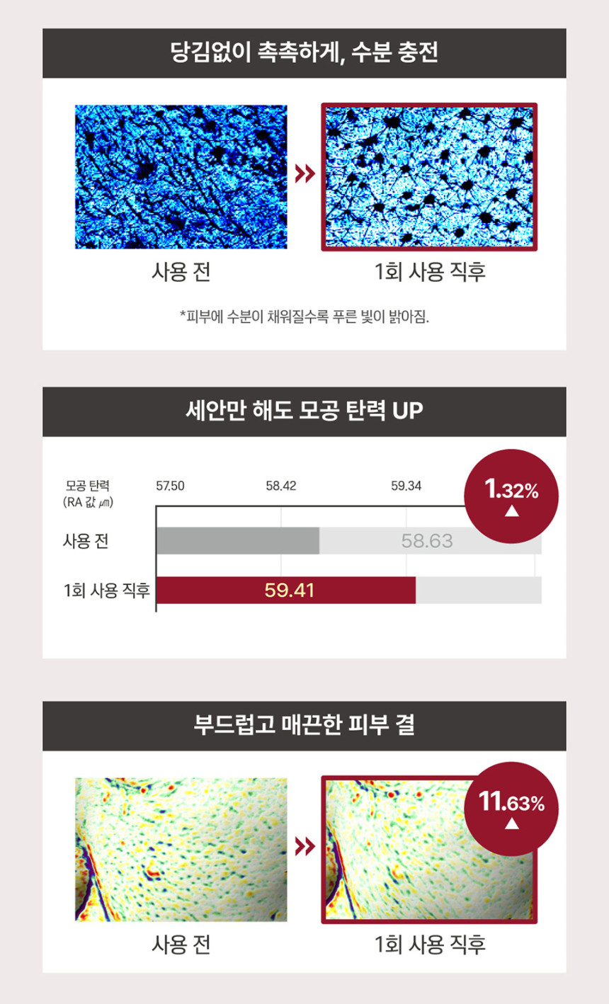 탄력, 보습, 클렌징까지 완벽하게 케어해줍니다.