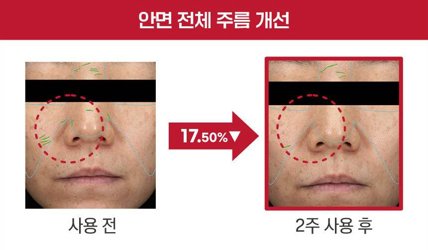 *초록색(깊은주름)&연두색(얕은주름)이 사라질수록 개선되었음을 의미