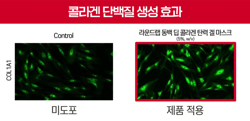 인간진피섬유아세포 내 콜라겐 2종(유전자, 단백질) 생성 증가에 대한 효력시험