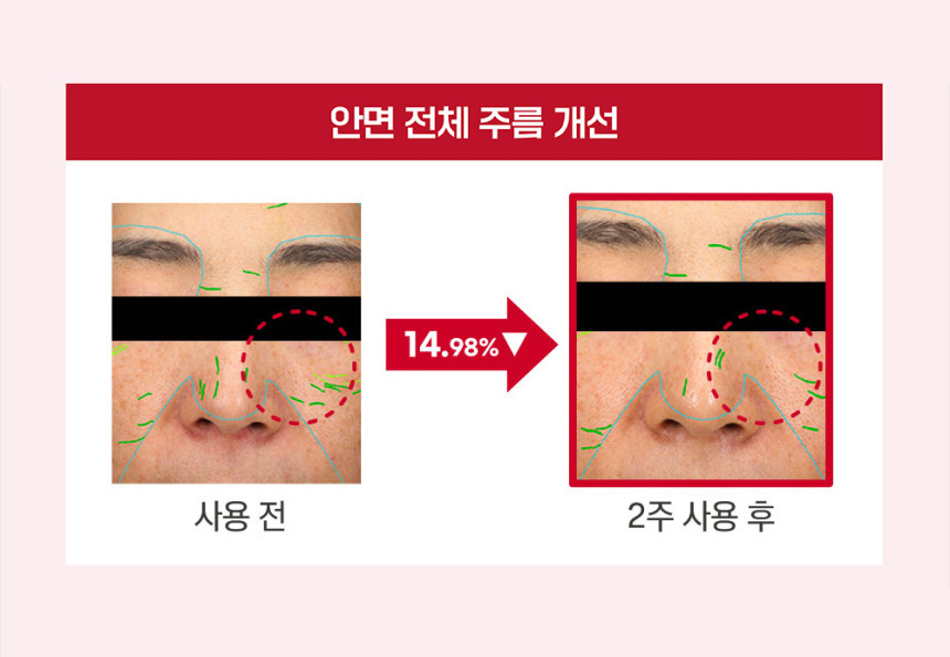*초록색(깊은주름)&연두색(얕은주름)이 사라질수록 개선되었음을 의미