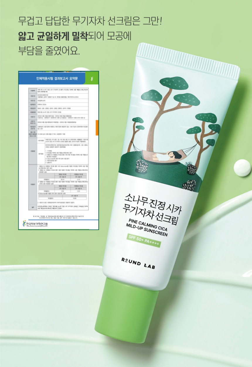 roundlab 라운드랩 소나무 진정 시카 무기자차 선크림 40ml (SPF50+/PA++++)