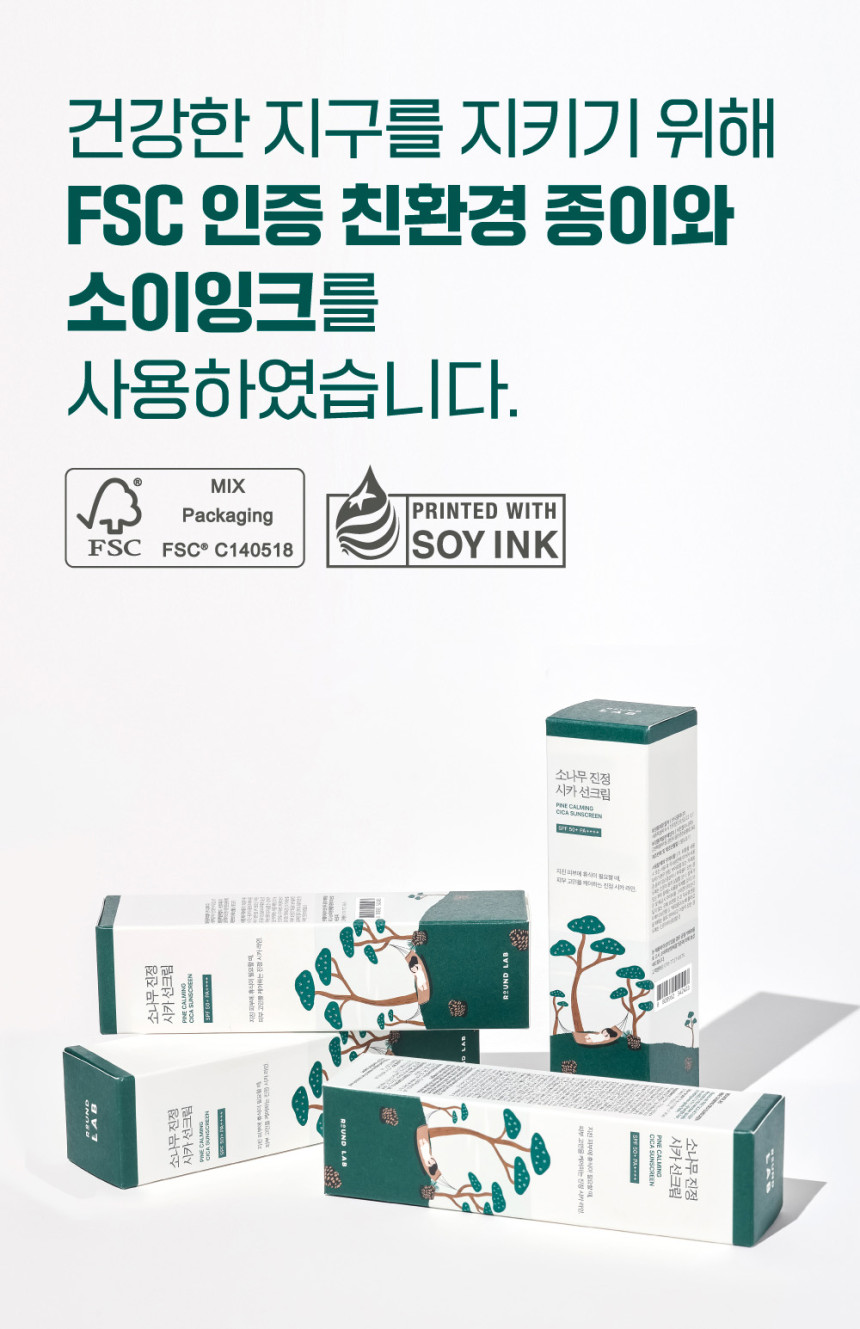 roundlab 라운드랩 소나무 진정 시카 선크림 40ml (SPF50+ PA++++) 2개