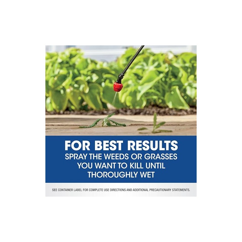 Take control of your outdoor space with Roundup? Weed & Grass Killer? Concentrate. It kills tough weeds and grasses to the root, including dandelion, large crabgrass, poison ivy, clover (red & white), spotted spurge, and other broadleaf weeds. It is rainproof in as fast as 30 minutes, produces visible results in hours, and allows you to plant 1 to 30 days after application (see booklet for details). Use Roundup? Weed & Grass Killer? Concentrate in flower beds, around trees, along fences, driveways and walkways, freshly cut woody stumps, in large areas for lawn replacement, garden plot preparation and other areas of your yard. Mix the concentrate according to label directions and spot treat or spray evenly each gallon of spray solution over 300 sq. ft. with a tank or hose-end sprayer. Do not allow people or pets to enter the treated area or touch treated plants until spray has dried. One 16 fl. oz. bottle of Roundup? Weed & Grass Killer? Concentrate makes between 2.6 and 5 gallons (see booklet for mixing instructions) and covers up to 800 to 1,500 sq. ft.